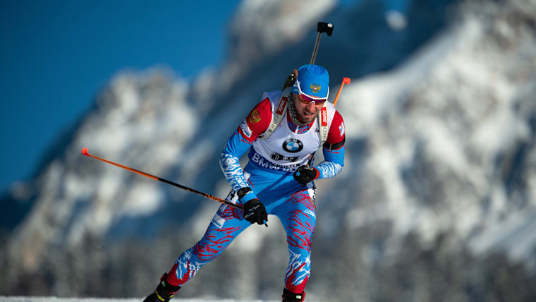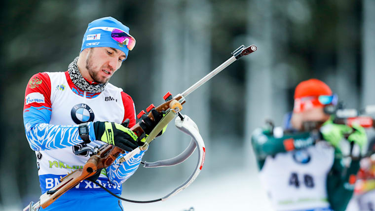 Alexander Loginov in action during the IBU Biathlon World Cup in Pokljuka, Slovenia
