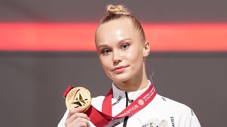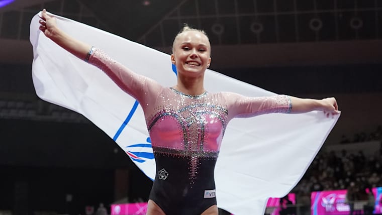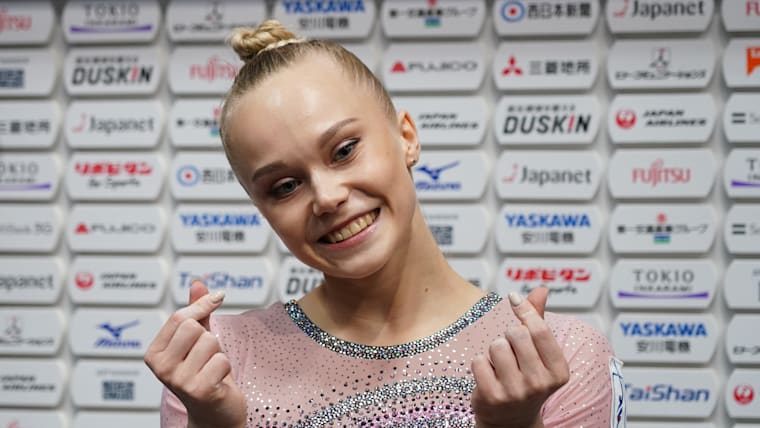 Ангелина Мельникова с золотой медалью в личном многоборье. Toru Hanai/Getty Images