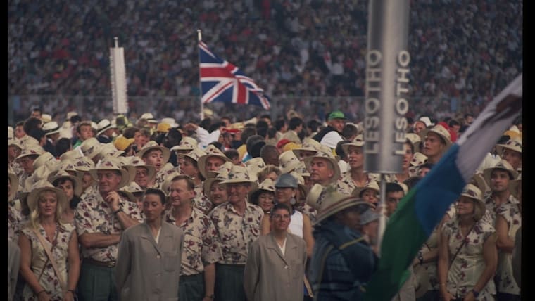 Barcelona 1992 OG, Opening Ceremony - Parade of athletes. The delegation of Australia (AUS) watches the delegation of Lesotho (LES) marching by.