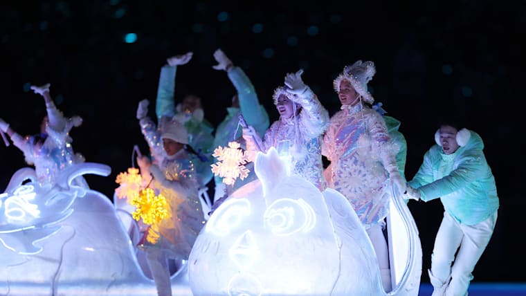 BEIJING, CHINA - FEBRUARY 20: Performers dance during the Beijing 2022 Winter Olympics Closing Ceremony on Day 16 of the Beijing 2022 Winter Olympics at Beijing National Stadium on February 20, 2022 in Beijing, China. (Photo by Maja Hitij/Getty Images)