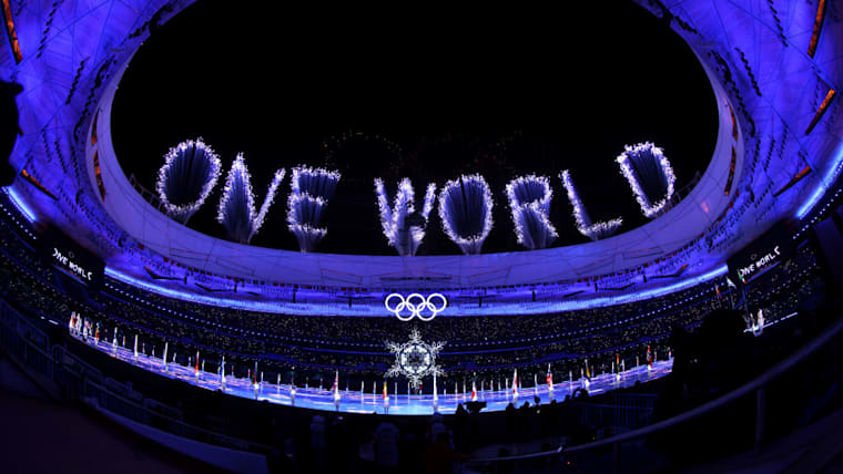 BEIJING, CHINA - FEBRUARY 20: A firework display is seen above the stadium during the Beijing 2022 Winter Olympics Closing Ceremony on Day 16 of the Beijing 2022 Winter Olympics at Beijing National Stadium on February 20, 2022 in Beijing, China. (Photo by Lars Baron/Getty Images)