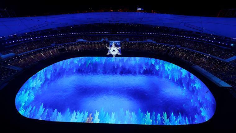 BEIJING, CHINA - FEBRUARY 20: General view inside of the Beijing National Stadium during the Beijing 2022 Winter Olympics Closing Ceremony on Day 16 of the Beijing 2022 Winter Olympics at Beijing National Stadium on February 20, 2022 in Beijing, China. (Photo by Richard Heathcote/Getty Images)