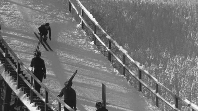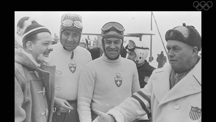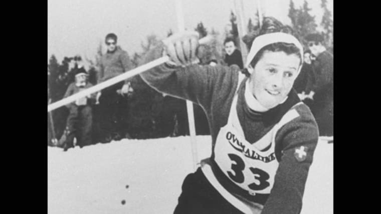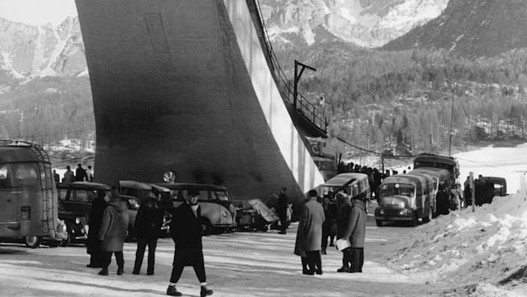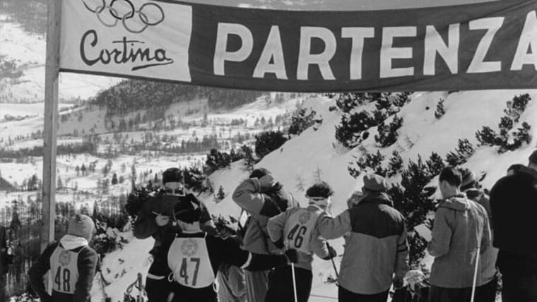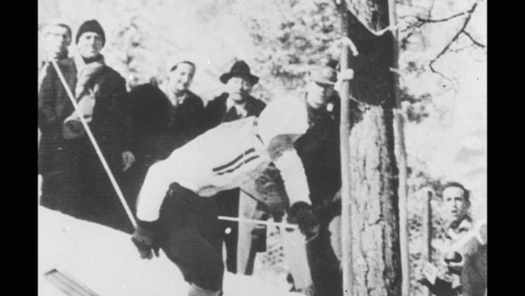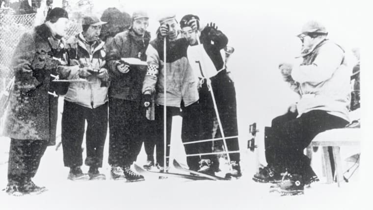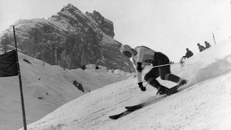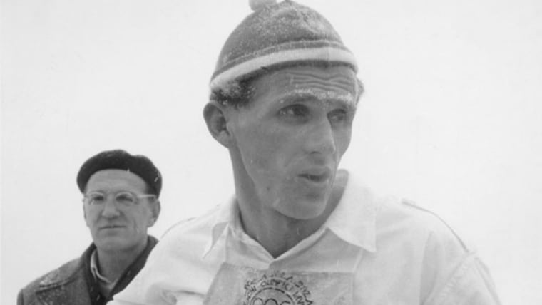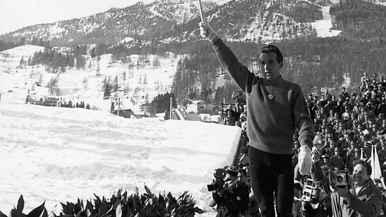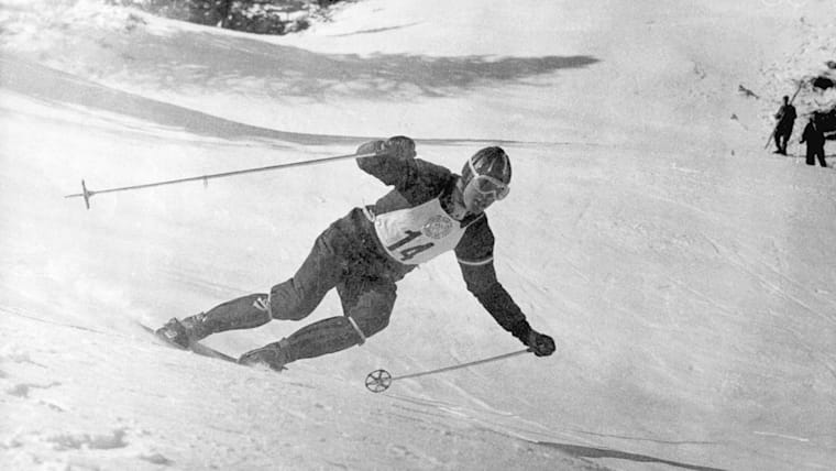 1956: Sixten Jernberg of Sweden in action at the 1956 Winter Games in Cortina d/Ampezzo. Jernberg is the supreme Nordic Skier, winner of a record nine Olympic Winter Games medals in three Games beginning with the Cortina d+Ampezzo Games in 1956. Mandatory Credit: IOC/Allsport