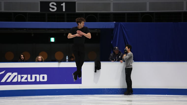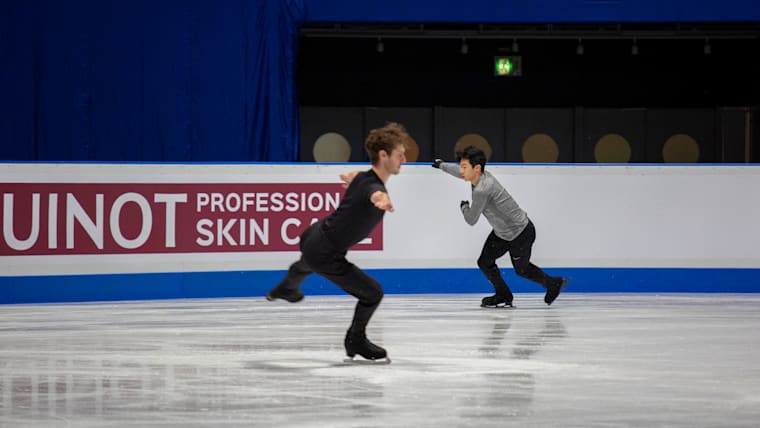 Nathan Chen and Jason Brown skate in Friday morning practice for the men's free skate
