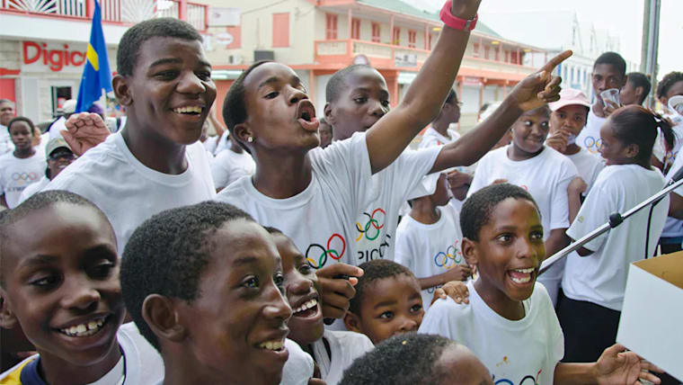 The Olympic Day. Parade with the flag of Antigua and Barbuda (ANT).