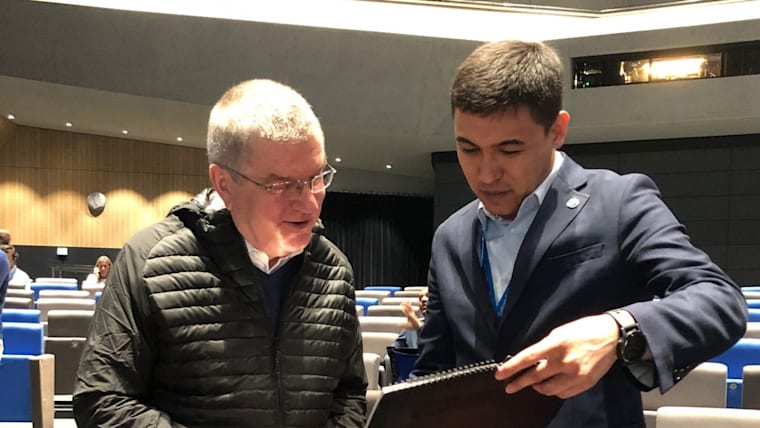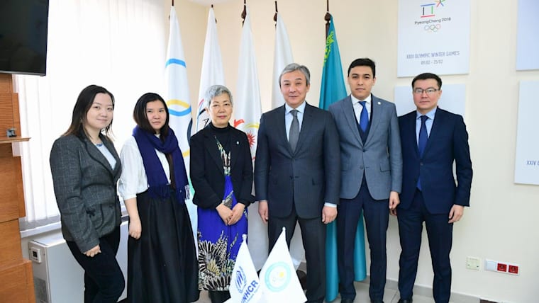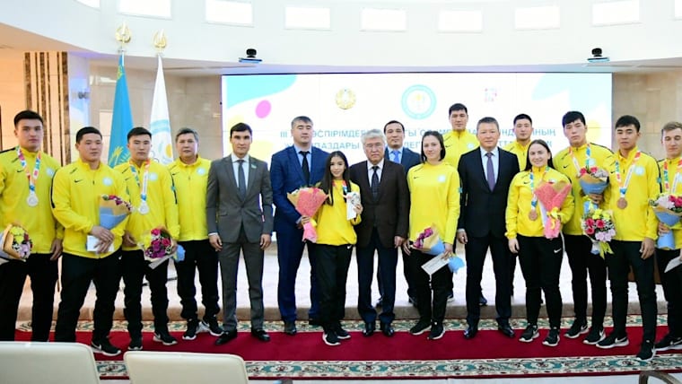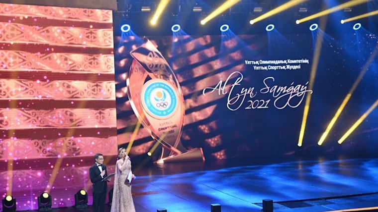 Members of Team Kazakhstan are seen during the Opening Ceremony of the Beijing 2022 Winter Olympics at the Beijing National Stadium on February 04, 2022.