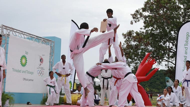 Members of Team Trinidad & Tobago are seen during the Opening Ceremony of the Beijing 2022 Winter Olympics at the Beijing National Stadium on February 04, 2022.