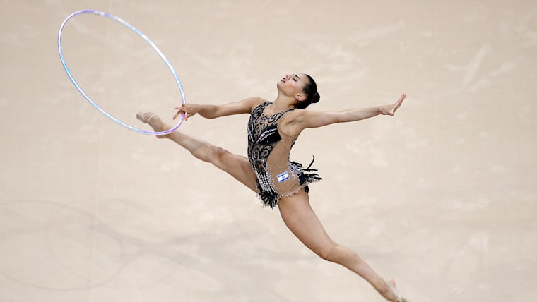 Linoy Ashram competing in the hoop at the European Games in Minsk