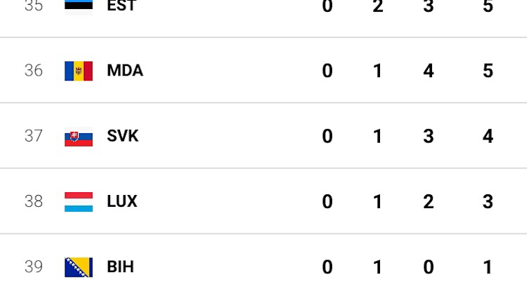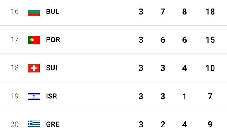 Medal table 34 - 43