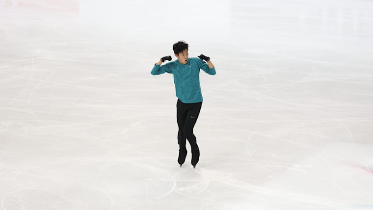 Nathan Chen practises at the Grand Prix Final