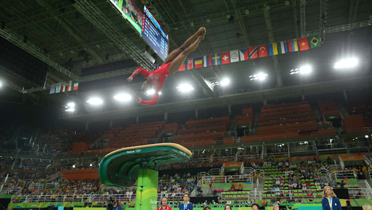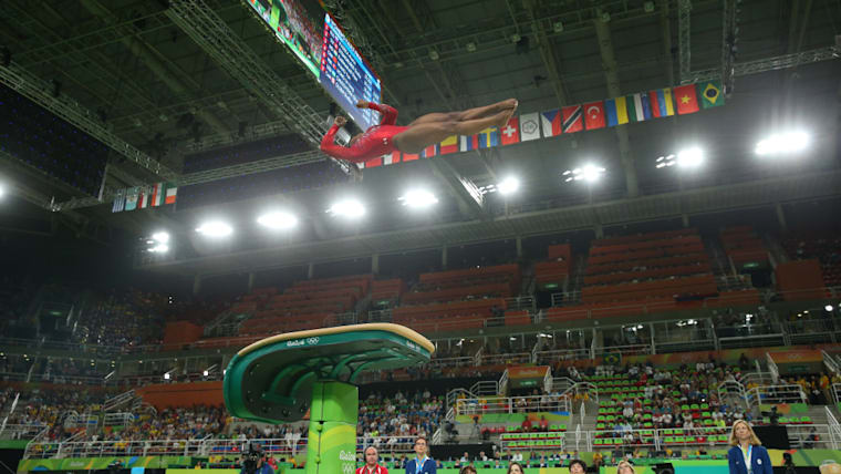 Simone Biles on vault during her gold medal winning performance at Rio 2016