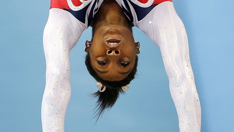 Simone Biles vaulting during the apparatus final at the 2014 Worlds