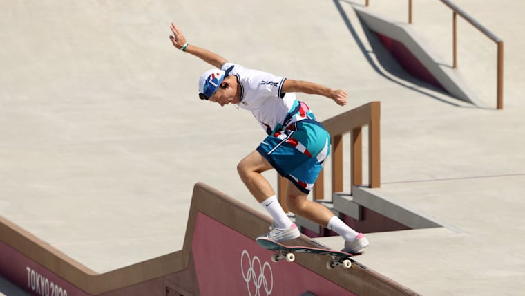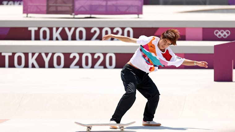 Yuto Horigome of Team Japan competes at the Skateboarding Men's Street Finals on day two of the Tokyo 2020 Olympic Games at Ariake Urban Sports Park on July 25, 2021 in Tokyo, Japan. (Photo by Ezra Shaw/Getty Images)