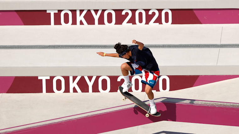 Jake Ilardi of Team USA competes at the Skateboarding Men's Street Prelims on day two of the Tokyo 2020 Olympic Games at Ariake Urban Sports Park on July 25, 2021 in Tokyo, Japan. (Photo by Ezra Shaw/Getty Images)