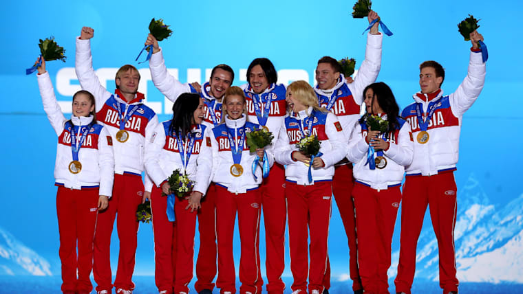 Figure Skating - Team Ice Dance – Russia team - Elena Ilinykh and Nikita Katsalapov - Gold medallists in figure skating team event