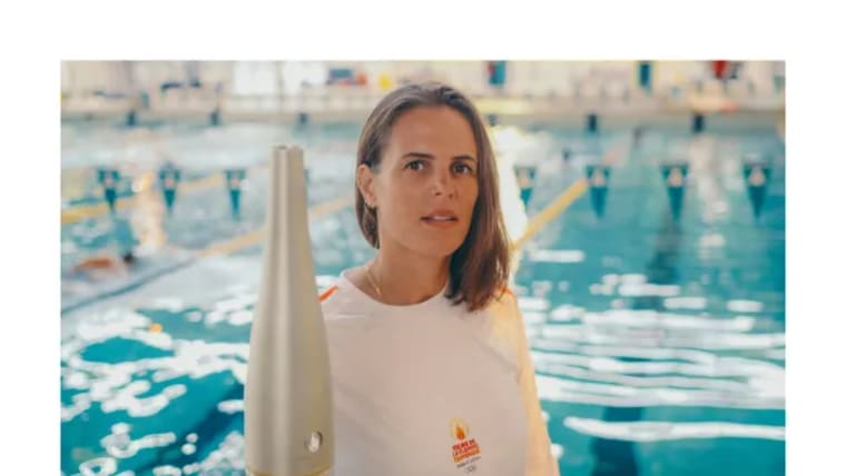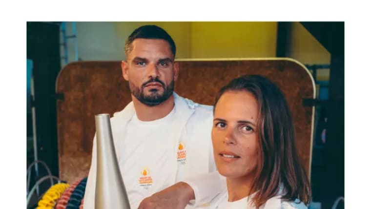 Florent Manaudou and his sister Laure carrying the Flame