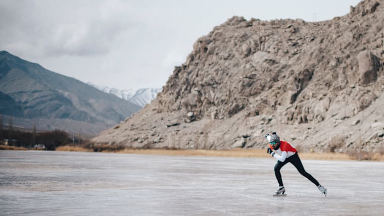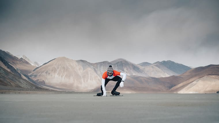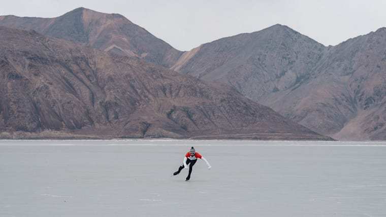 Vishwaraj Jadeja skating in the Himalayas