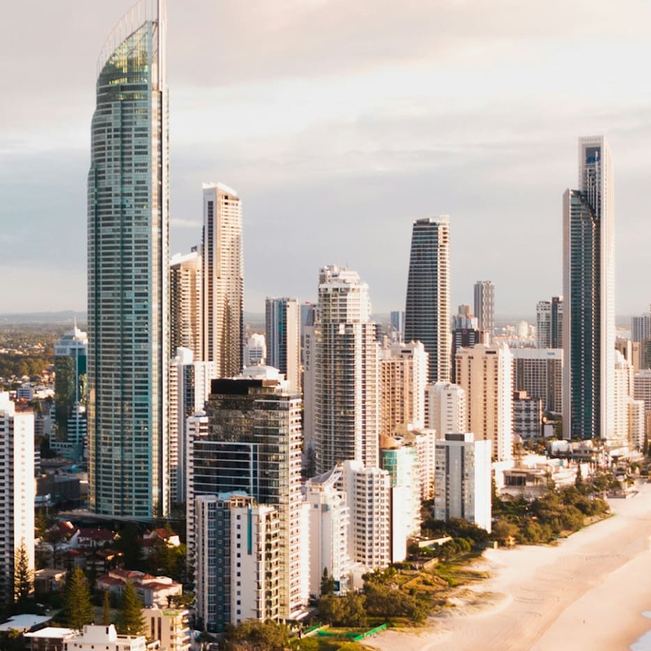 Gold Coast, famous for surf breaks & stunning beaches.