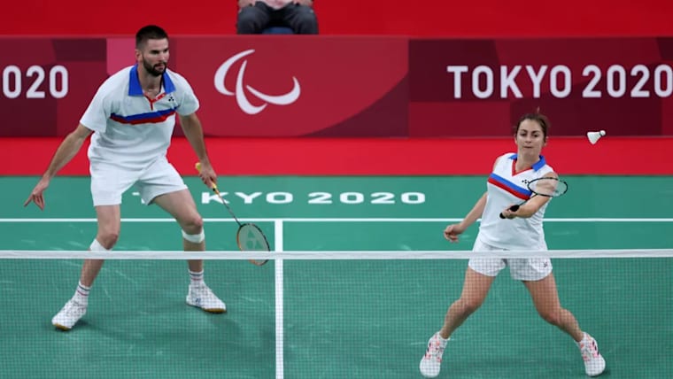 Paralympics Games Tokyo 2020, Faustine Noel and Lucas Mazur of Team France compete in the Badminton Mixed Doubles SL3-SU5 Gold Medal Match © Kiyoshi Ota/Getty Images.