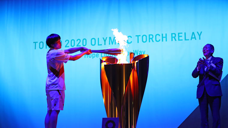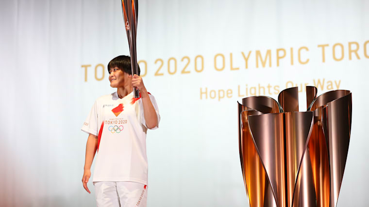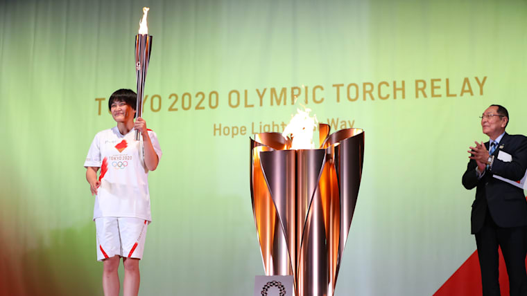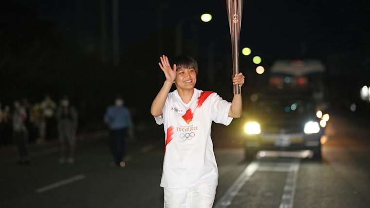 Aomori, JAPAN - 11 JUNE, 2021 : The Olympic Torch Relay section 7 in Hachinohe City, Aomori prefecture, Japan.