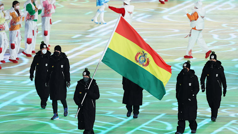 Members of Team Bolivia are seen during the Opening Ceremony of the Beijing 2022 Winter Olympics at the Beijing National Stadium on February 04, 2022.
