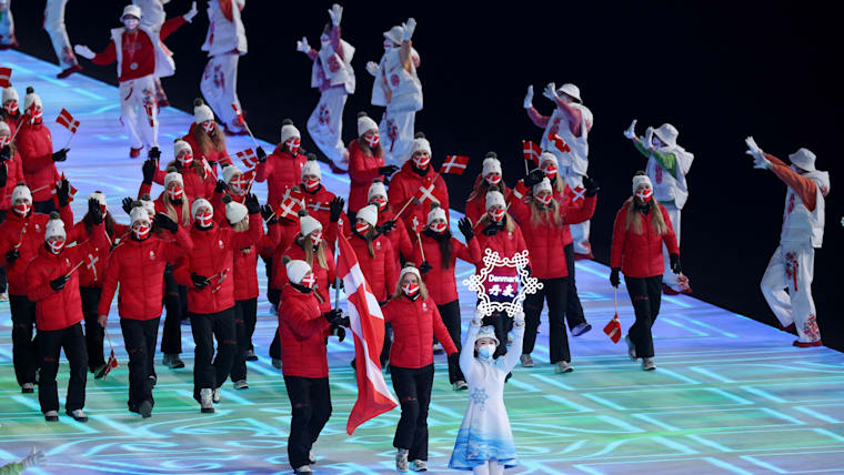 Members of Team Denmark are seen during the Opening Ceremony of the Beijing 2022 Winter Olympics at the Beijing National Stadium on February 04, 2022.