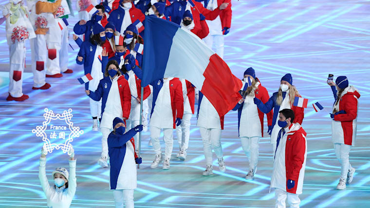 Members of Team France are seen during the Opening Ceremony of the Beijing 2022 Winter Olympics at the Beijing National Stadium on February 04, 2022.