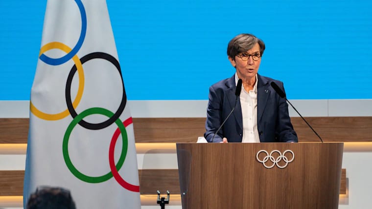 Dr Valerie Fourneyron of the ITA at the 139th IOC Session at the CNCC ahead of the XXIV IOC Olympic Winter Games Beijing 2022