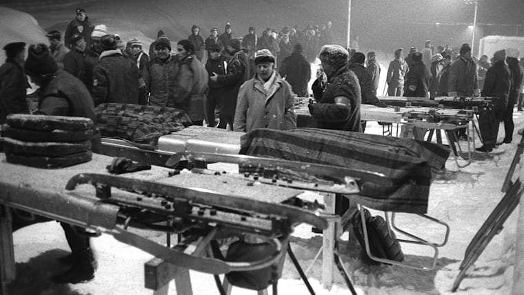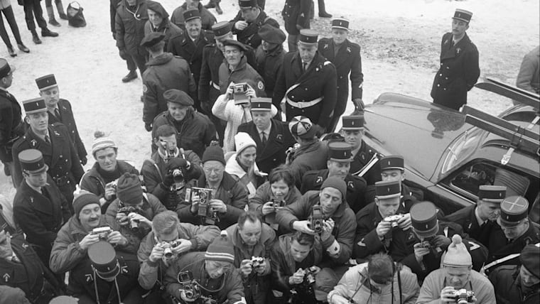 As the Alpe d’Huez bobsleigh track was too exposed to the sun, the competitions at the Grenoble 1968 Games were held at night. Depending on the temperature, the athletes had to wake up in the middle of the night to take part in the events. --- Grenoble 1968 – Bobsleigh, participants taking care of the bobsleighs.