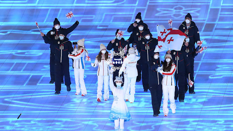 Members of Team Georgia are seen during the Opening Ceremony of the Beijing 2022 Winter Olympics at the Beijing National Stadium on February 04, 2022.