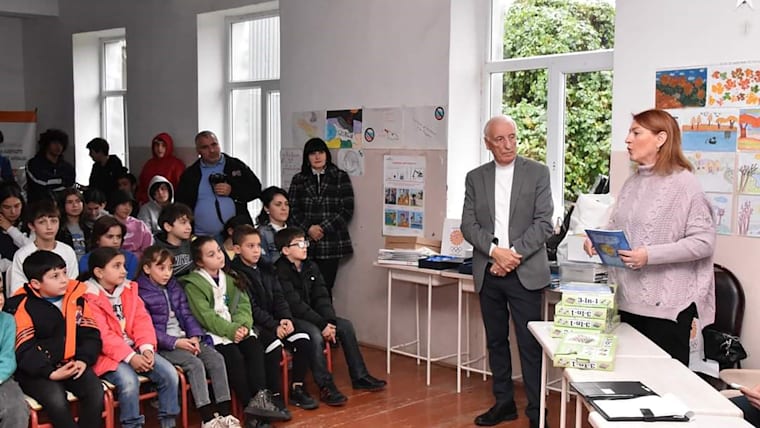 Georgian NOC. Olympic champion Nino Salukvadze shared her story with school children.
