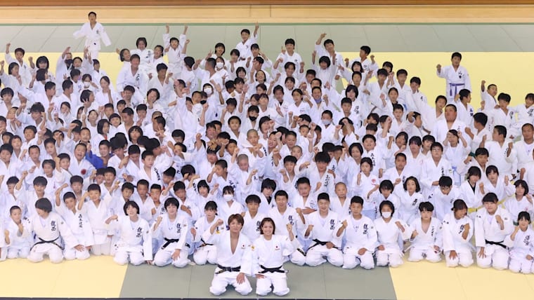 JOC / AFLO SPORT. Beaucoup d’enfants ont participé à un événement de judo avec les olympiens Abe Hifumi et Abe Uta.