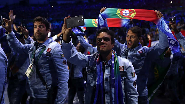 Member of Team Portugal take part during the 'Heroes of the Games' segment during the Closing Ceremony on Day 16 of the Rio 2016 Olympic Games at Maracana Stadium on August 21, 2016 in Rio de Janeiro, Brazil.