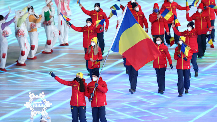 Members of Team Romania are seen during the Opening Ceremony of the Beijing 2022 Winter Olympics at the Beijing National Stadium on February 04, 2022.