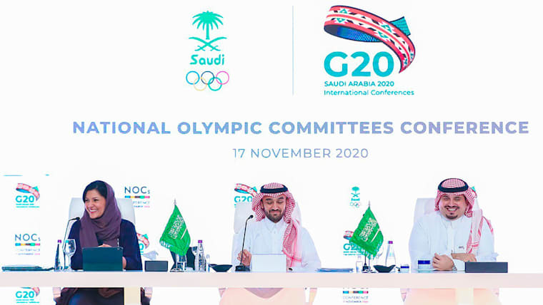 Members of Team Saudi Arabia are seen during the Opening Ceremony of the Beijing 2022 Winter Olympics at the Beijing National Stadium on February 04, 2022.