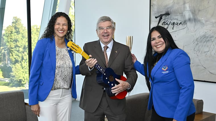 IOC / Christophe Moratal. President Bach with the Venezuelan NOC President and Secretary General.
