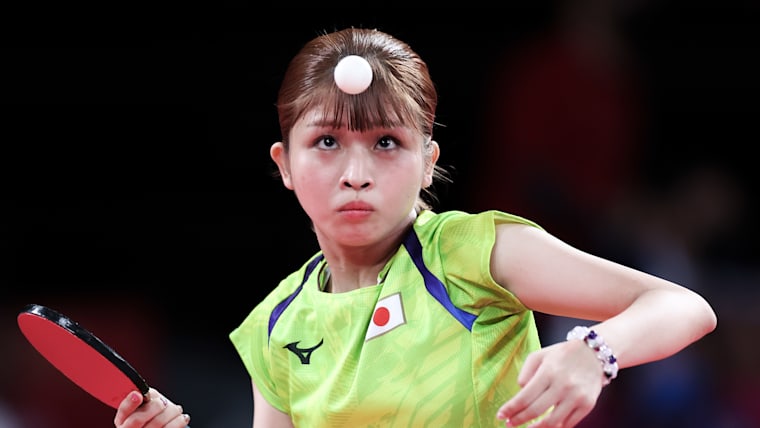 TOKYO, JAPAN - AUGUST 25: Kanami Furukawa of Team Japan competes against Natalya Kosmina of Team Ukraine during the Women's Singles Class 11 table tennis match on day 1 of the Tokyo 2020 Paralympic Games at Tokyo Metropolitan Gymnasium on August 25, 2021 in Tokyo, Japan. (Photo by Lintao Zhang/Getty Images)