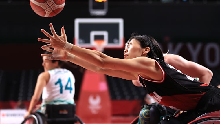 CHOFU, JAPAN - AUGUST 25: Chihiro Kitada #18 of Team Japan reaches for a loose ball against Team Australia during the Women's Wheelchair Basketball Group A game on day 1 of the Tokyo 2020 Paralympic Games at Musashino Forest Sport Plaza on August 25, 2021 in Chofu, Japan. (Photo by Carmen Mandato/Getty Images)