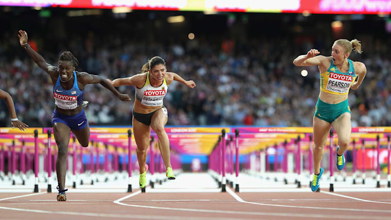 Dawn Harper Nelson takes silver behind Sally Pearson in the 100m hurdles at the 2017 London World Championships