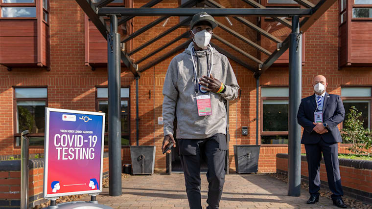 Eliud Kipchoge leaving his COVID-19 testing visit (Credit: Virgin Money London Marathon)