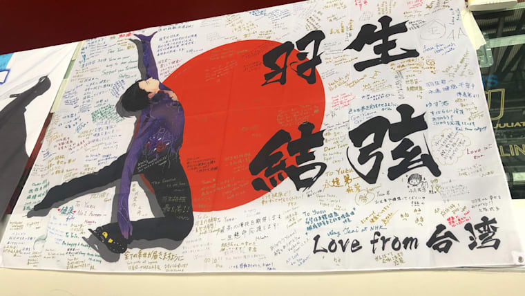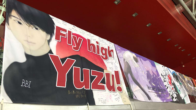 Alina Zagitova and Yuzuru Hanyu fan banners
