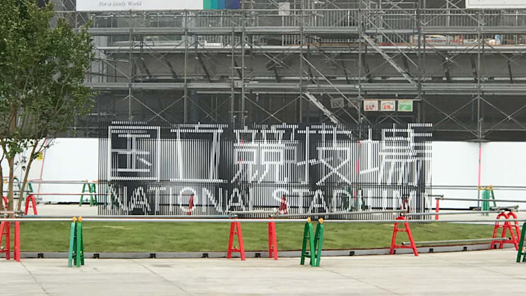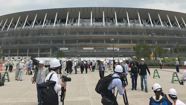 Wide external view of the under-construction new National Stadium on 3rd July 2019