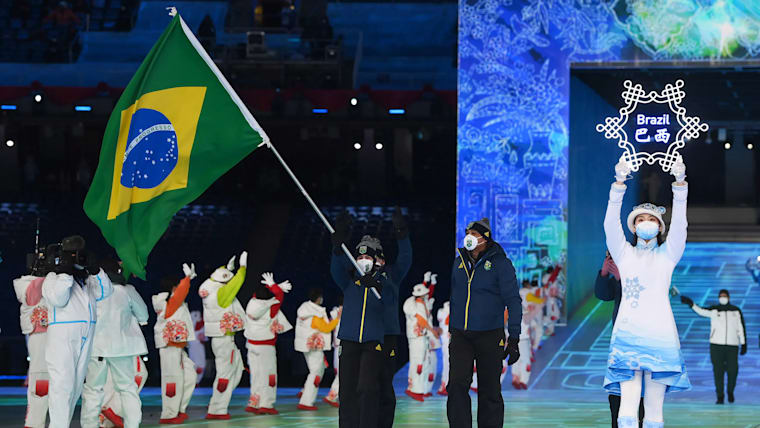 Members of Team Brazil are seen during the Opening Ceremony of the Beijing 2022 Winter Olympics at the Beijing National Stadium on February 04, 2022.