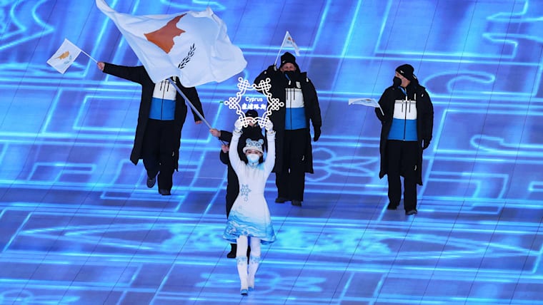 Members of Team Cyprus are seen during the Opening Ceremony of the Beijing 2022 Winter Olympics at the Beijing National Stadium on February 04, 2022.