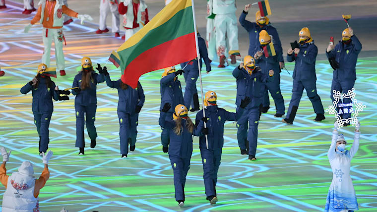 Members of Team Lithuania are seen during the Opening Ceremony of the Beijing 2022 Winter Olympics at the Beijing National Stadium on February 04, 2022.