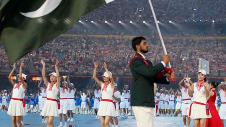 BEIJING - AUGUST 08: Hockey player Zeeshan Ashraf of Pakistan carries his country's flag during the Opening Ceremony for the 2008 Beijing Summer Olympics at the National Stadium on August 8, 2008 in Beijing, China.