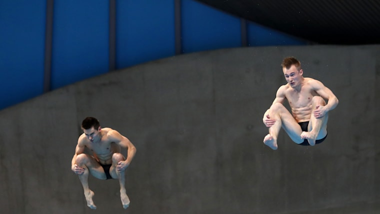 Jack Laugher and Daniel Goodfellow compete in synchro 3m springboard final at the Sagamihara World Series