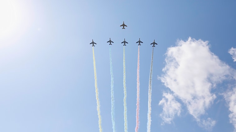 The Blue Impulse aerobatic team of the JASDF flew over the ceremony