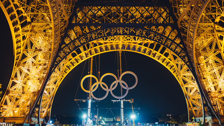 I cerchi Olimpici sono stati installati sulla Torre Eiffel