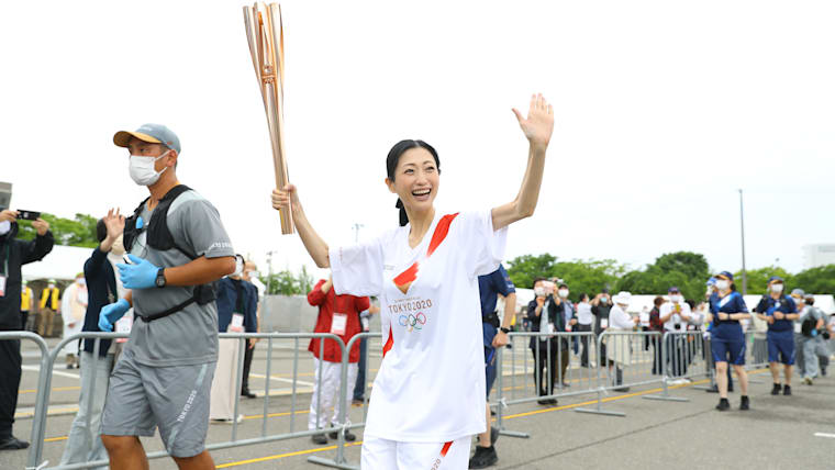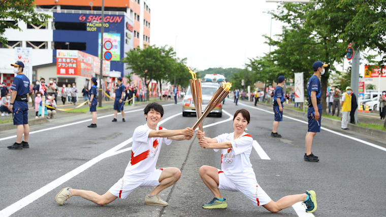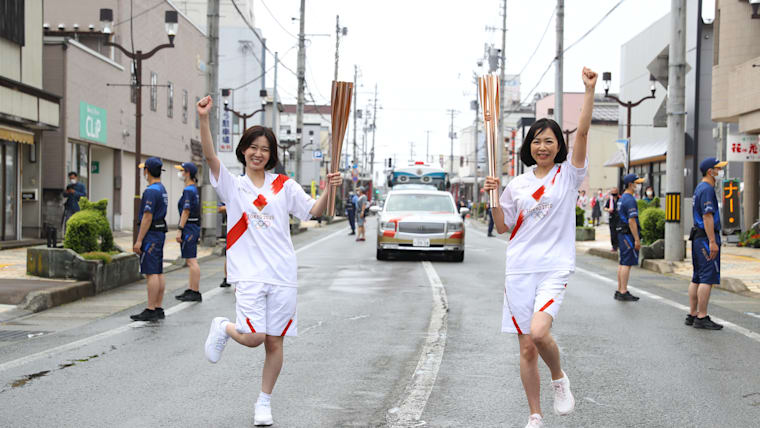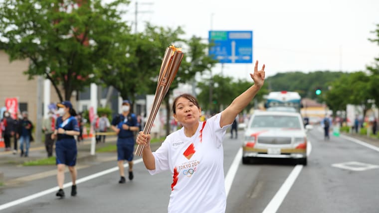 Akita, JAPAN - 8 JUNE, 2021 : The Olympic Torch Relay section 2 in Yokote City, Akita prefecture, Japan.